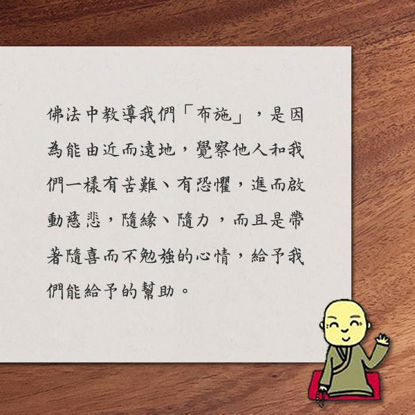 | ■ 文╱果然是大師 《大唐西域記》及《三藏法師傳》中,有一則關於「雁塔」的記載。古印度因陀羅勢羅求訶山的東峰,有座傳承原始佛教的寺院,因此,其中的僧人可食三種淨肉──即不見殺、不聞殺、不是為自己而殺的肉食。 後來,有段時日,寺中缺乏食物,僧眾們只得忍受飲食不足之苦。有一天,一位比丘經行時,忽見一群雁鳥飛過,瞬間動了個念,對雁群戲稱:「寺院中缺糧缺好一陣子了,僧眾們糧食不足,如果您們當中有菩薩的話,就知道該怎麼做了。」他才說完,竟見一隻雁鳥脫離行列,向他飛來,並當著他的眼前投地自殺! 這位比丘看得驚訝極了,將雁鳥的屍身帶回寺院,並向師兄弟們說出雁鳥自殺的經過,眾人聽了無不感歎、感佩,互相說道:「原來世間真有菩薩,這隻雁即是菩薩示現啊,牠以自己的身體供養我們,但我們何德何能可以吃牠?」比丘們隨即築起一塔,將雁身埋入其中,以為紀念。後來玄奘大師回到中國,便在慈恩寺中仿照該塔的樣式,建造了「大雁塔」。 雁鳥自殺送食、護法神送糧等事蹟,在佛教典籍中不乏記載。宋朝大揚默照禪的宏智正覺禪師,在天童寺住持了三十年,畢生修持精進。他的《廣錄》中記載,他坐一定是盤腿跏趺而坐,日日過午不食,自從擔任住持以來,除了不貪求供養之外,有布施的因緣必定不落人後。 聖嚴師父在《禪門修證指要》即描述,當時,正值金軍南侵,民間生活困苦,其他寺院擔心寺中糧食不足,因此謝絕並遣離掛單的雲遊僧人,只有宏智禪師來者不拒,他說:「說不定明天寺院就被金人佔領了,到時還有什麼能剩下?我該慶幸今天還能做得了主,既是如此,能不把寺中所有跟大眾分享嗎?」原本,天童寺中只有兩百多個住眾,他這話一傳開,四方雲遊僧人爭相歸投,一下暴增至一千兩百多人。寺院中的執事人擔心地向他回報,倉庫米糧快不夠了,不能再這樣下去,他卻說:「人各有口,非汝憂也。」意思是每一個人都有自己的一張嘴、一份福報,用不著擔心。 果然,不久後便有人送了千斛的米來供養。而且,在那樣的艱難之際,他還能設法為來投靠的僧眾增蓋近千間房舍,讓所有僧眾都能安心在此住下修行,每每在困境中柳暗花明,當時的人都相信,這是得了護法神護祐的緣故。 聖嚴師父在日本即將無以為繼之時,指導老師?本幸男博士即以靈空光謙禪師的法語:「道心之中有衣食,衣食之中無道心。」勉勵,這句話給了師父莫大的力量,最終,果然在自己對佛學鍥而不捨的努力下,得到沈家楨居士經濟上的資助,完成學業。 聖嚴師父曾解釋何謂『道心』:「所謂的道心,是指菩提心、迴向發願心,是指做一切事,先考慮到眾生的利益,考慮到其他人的利益,使得其他人因我們研究佛法、弘揚佛法而得到利益。」因此,道心最核心的兩個精神,無非是無我的智慧,以及利他的慈悲。 從因果不空的角度來看,我們對他人所發散的一切善心、善語、善行等種種善業,都會絲毫不減地回歸到自己身上,因此,「千金散去復還來」確實是可能的。然而,我們通常很難如此做到,因為沒法如此對因果深信不疑,因而無法不多設想自己一些,這是人之常情,也是生存的本能。 佛法中教導我們「布施」,是因為能由近而遠地,覺察他人和我們一樣有苦難、有恐懼,進而啟動慈悲,隨緣、隨力,而且是帶著隨喜而不勉強的心情,給予我們能給予的幫助。在這個過程中,一方面與眾生結善緣,一方面也練習捨心修無我。長此以往,除了我們的心境漸漸變大、變寬,而更加自在之外,福報也將不求自來。 |