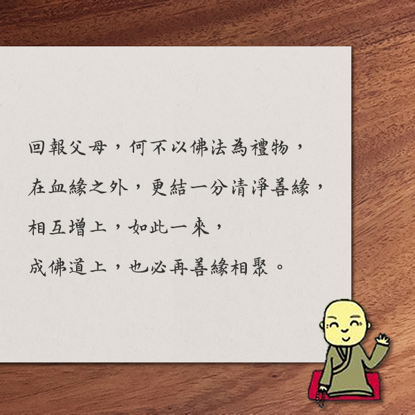 | ■ 文╱果然是大師 有一次,佛陀與阿難遊化居荷羅國時,途中,兩人走得累了,在樹下稍事休息。不遠處,有個老婦人正在井邊汲水。佛陀見了,便跟阿難說:「我有些口渴,您去跟那位老婦人要一點水吧。」阿難聽了,隨即應命前去。 當時,老婦人聽說是佛陀需要喝水,立刻自己帶了一瓶水想親手供養佛陀。她愈走近佛陀時,將佛陀看得愈清楚,不自覺地情緒益發激動。來到佛前,她將水瓶緩緩地放到地上,突然情不自禁地上前抱住佛陀不放,甚至激動落淚!阿難在一旁見了趕忙上前,想要拉開她,佛陀反而阻止,說道:「沒關係。這位老婦人過去五百世曾經做過我的母親,至今世還餘留對我的情感。若您阻擋她的話,她可能會痛苦到七孔流血而亡。」老婦人抱佛抱了好一會兒,終於情緒漸漸平復,這才心滿意足地放手、退開。 佛陀接著吩咐阿難找來這位婦人的主人,替她求情:「請您讓這位老婢女出家吧,以她的善根因緣,若能出家修行,能夠證得阿羅漢果,希望您能成就她的修行。」這位主人聽了,一口答應。佛陀便讓阿難將老婦人帶至大愛道比丘尼的尼僧團出家,老婦人在精進修行之下,果然不久便證得阿羅漢果…… 這個記載在《雜寶藏經》中的故事,讓我們看到一個母親對孩子的愛與牽掛有多深刻,甚至隔陰轉世之後,還是留有餘情,見面即便不相識,仍覺得依依難捨、留戀不已…… 我們再來看看佛陀的另一個母親——生下佛陀後七日便病故,往生忉利天的摩訶摩耶夫人。據《摩訶摩耶經》及玄奘大師的《大唐西域記》所載,佛陀在娑羅雙樹入涅槃後,阿那律特地上昇忉利天宮,面告摩耶夫人:「世尊已於今天入了涅槃。」當時,摩耶夫人聽了,悲慟地幾乎昏了過去,與諸天人來到拘尸那羅,看到佛陀的金棺,以及佛陀的九衣、?及錫杖,心疼地擁住痛哭,甚至暈厥倒地,醒來後痛心說道:「人天福盡,世間眼滅!我的兒子昔日帶著這些器物四處弘化,利益人天,如今,這些器物失去了它們的主人了……」經中記載,當時諸天人及四眾見了摩耶夫人如此傷心,都跟著流下難過的眼淚,淚水之多,甚至成河…… 說來神奇,這時,佛陀的金棺突然自開,放出無量光明。在一片光明中,金棺中的佛陀,竟雙手合十坐起,以溫和的聲音慰問母親,說道:「您還特地遠從忉利天來此啊!諸行法爾,願勿深悲。」意思是世間所有現象都是因緣聚散,一切法皆不離無常,請您無需悲傷至此。經過佛陀的一番安慰、說法,摩耶夫人才心開意解。 阿難見此情狀,強忍哀傷問道:「將來若有人問起此事,我應該如何流傳?」佛陀說:「就說如來為後世不孝眾生,從金棺中起身,示現為母說法。」 至於佛陀的第三位母親,即是他的姨母大愛道。從經律中,我們可以看到佛陀成道後,大愛道看到一手帶大的孩子,成了偉大的人天師範,對出家修行生深嚮往,不顧千金之軀,忍耐長途跋涉之苦,率五百位釋迦族的女子堅持追隨佛陀…… 這三位佛陀的母親,示現的正是一般世間母親對孩子的愛,從為人母的那一刻起,對孩子的牽掛就不會停止,否則,已投生忉利天,甚至已證得初果的摩耶夫人,對於佛陀的入滅也不會如此傷心。母親們如此至深無悔、不求回報的情感,可說是世間最動人的愛。然而,佛陀上升忉利天為生母說法,以及度化前世母親、姨母出家,證得解脫,讓母親們了生死、斷煩惱,更是回報母愛最究竟的方式。 母親節剛過,您的母親是如何過這個母親節的?我們一般凡夫或許無法如佛陀度化自己的母親,甚至,這一生,恐怕怎麼盡心盡力,也難以回報父母的恩德,如聖嚴師父回憶自己父母時所稱:「父母看兒女是肉裡的肉,兒女看父母是皮外的皮,雖然是一樣的痛,痛的程度卻不同!」這是做父母的與做子女的本質上的差異。然而,讓父母少煩少惱,卻是一個可依循的大方向,在日常生活中,儘可能地讓自己的作為,不讓父母煩惱之外,佛法,更是幫助人少煩少惱,順向解脫的究竟之法。回報父母,何不以佛法為禮物,在血緣之外,更結一分清淨善緣,相互增上,如此一來,成佛道上,也必再善緣相聚。 |