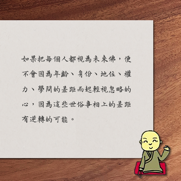 因緣難料,以平等心對待他人,便是對未來的自己慈悲 取得連結 Facebook X Pinterest 以電子郵件傳送 其他應用程式 3月 03, 2021 心靈電子報第899期 2021-3-3 心靈電子報/每週三發報 果然是大師 平等心,真智慧 就因緣因果看來,對他人慈悲,也是對未來的自己慈悲。 ■ 文╱果然是大師 在經典中記載了一段佛陀與波斯匿王的對話。佛陀在經過六年苦修,證得佛道之後,名聲遠播。當時,憍薩羅國的波斯匿王乍聞佛陀的名聲,在佛陀遊化至憍薩羅國時,便帶著試探的心前往拜訪,問道:「許多大修行者年少出家,修到白髮蒼蒼還不敢說自己得道,而您年紀輕輕,修道不過六年,便已證得無上正等正覺,這怎麼可能呢?您真的敢如此自稱嗎?」佛陀不卑不亢地回覆:「確實,我已證得無上正等正覺。」接著,佛陀便向波斯匿王說世界上四種不能輕視的人事物——王子、小蛇、小火,以及年幼沙門。 為什麼? 在王位世襲制的國家,只要是王子——雖然不一定是太子或王儲——都可能是將來繼承王位的人,若是明眼人,誰敢得罪未來的國王呢?至於小蛇雖然不起眼,仍具有毒性;而星星小火,亦足以燎原,因此,對於愛命、護命的人,以上三者,萬萬不能輕忽。 那麼年幼沙門呢?不說已證聖位的諸佛菩薩,就是西天東土、歷代高僧祖師,無不曾經歷對佛法一無所知的階段,然而,只要立志於三學的修持,一旦修行成就,便能度人無數,所以,年幼沙門不可輕——他並不關乎人命,卻關乎慧命。 就世間法來說,因緣難料,現在看起來不起眼的人事物,都有可能在種種因緣之下成氣候或者起關鍵性的力量,因此,用勢力眼看人,說不準未來後悔的不會是自己。聖嚴師父就曾經說過,他在赴日留學之前,有一位衣裝襤褸,外表乾乾瘦瘦的老居士固定會去聽他講經,當時,臺灣教界擔心他赴日後會還俗,因此一片反對之聲,原有的奧援及資助也都紛紛收手,後來竟然是這位老居士雪中送炭,不定時提供師父經濟上的援助,為此,師父一直感念在心。 其實,就佛法的觀念來說,佛與眾生是平等的,如果把每個人都視為未來佛,便不會因為年齡、身份、地位、權力、學問的差距而起輕視忽略的心,因為這些世俗事相上的差距有逆轉的可能,而就眾生都具有的佛性來說,則不因為這些事相而有所差別,所以當然沒有誰有權利輕視他人,或者其他眾生。 聖嚴師父經常勸勉大眾:「以慈悲對待人,以智慧處理事。」更進一步解釋:「以平等心關愛周遭所有的人,即是慈悲心;不以個人的利害得失做考量,而處理一切的事,即是智慧心。」若能以平等心對待他者,便是慈悲,而就因緣因果看來,對他人慈悲,也是對未來的自己慈悲,所以說,慈悲才是真正的智慧。 聖嚴法師法語 心是不容易讓你自己來指揮的, 不容易使它安靜下來的。 沒有修行,沒有觀照自心活動能力者, 會認為自己的「心」沒有問題, 這是愚癡的人。 ◎ 摘自:《禪門》 本 週 選 讀 平安的人間(大字版) 聖嚴法師 向外追求的平安是不可靠的,唯有讓自己身心安定,並且抱持著積極樂觀的態度,才能擁有真正的「平安」...... 只是平常心:讓敏感的你不再傷痕累累的41個禪練習 ?野俊明 愈「不想被討厭」,愈容易不開心!給自己一顆平常心,解決生活中的人際困擾與社群焦慮...... 素食聰明吃 禪味小食堂──薏仁花生黃瓜船 俗諺說:「做菜沒有師父!」意思是說做菜沒有一定的方式,每個人只要肯動手,都可以做出屬於自己味道的料理。例如我利用常見的小黃瓜,混搭薏仁、花生醬,做成黃瓜船,常見的食材,不用特別的技巧,便做出這道口感清爽卻又充滿濃濃花生香的可口小菜。 做法 : (1) 小薏仁洗淨,加1大匙水,蒸熟備用。 (2) 小黃瓜洗淨去頭尾,縱切一半成長條狀,再切成約4公分小段,挖掉瓜囊,成小黃瓜船。 (3) 花生醬和小薏仁拌勻,填入小黃瓜船。 摘自:《人生雜誌391期》 延伸閱讀: 中餐素食證照教室:素食丙級技術士技能檢定術科實作&學科滿分題庫 劉瑋如, 王鉦維 以考生的角度編寫本書,親自測試題組中的每一道菜,將每道菜濃縮成6個最佳精華步驟,以圖文對照詳細解說,並且補充許多烹調技巧、刀工、火候...... 活 動 頭 條 鈔取佛陀法身舍利 農禪寺3月推鈔經共修 法鼓山北投農禪寺3月起將舉辦鈔經共修,日期為3/4、3/18、4/8、4/15、5/6、5/20,每週四下午2點至4點半。活動不須事先報名,凡有意體驗鈔經法喜者均可參加,並請自備《心經》鈔經紙與鈔經筆,經文版本不限,歡迎一起來共修...... 緬懷師恩 續願傳燈 北美三道場線上聯合分享 今年由於疫情,法會均改為線上舉行,北美洛杉磯、舊金山及溫哥華等三處道場,則於2/20、2/21周末兩天,聯合舉辦三場「法鼓傳燈日」系列活動,以不同的角度、主題緬懷感恩聖嚴法師...... 《人生》雜誌451期3月號 當身、心、環境趨近同步和諧,生命將充滿轉化的驚喜…… 查看活動 法鼓文化 版權所有 © 2021 Dharma Drum Corp. All Rights Reserved 電子報管理:點此訂閱 / 取消電子報 取得連結 Facebook X Pinterest 以電子郵件傳送 其他應用程式 留言