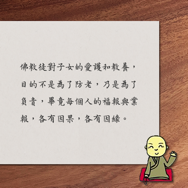 家庭是最親近的道場,家人之間更要注意身口意、結善緣 取得連結 Facebook X Pinterest 以電子郵件傳送 其他應用程式 3月 17, 2021 心靈電子報第901期 2021-3-17 心靈電子報/每週三發報 果然是大師 兒孫自有兒孫福 與父母的好因緣,只有自己更珍惜、更感恩,也以身口意,為彼此結更多的善緣。 ■ 文╱果然是大師 《雜寶藏經》中有個故事,波斯匿王有一個女兒,名叫善光,這位善光公主不但莊嚴美麗,而且聰慧過人,因此,極得父母的疼愛,以及宮中上下眾人的愛敬,波斯匿王非常以這個女兒為榮,有一次,他忍不住驕傲地對女兒說道:「妳有今天的一切,都是因為我的緣故。」不料,善光公主冷靜回他:「這是女兒自己的業力,不是因為父王。」波斯匿王聞言愕然,再三強調:「是我的關係!」但善光公主也仍堅持她的知見:「不是,是女兒的業力。」波斯匿王一氣之下,把善光公主下嫁給全國最窮困的乞丐,想讓這個不知感恩、執迷不悟的女兒吃點苦頭。 一個月後,波斯匿王心生不捨,派人打探公主的近況,訝然得知公主現在享受的榮華富貴,竟不下於皇宮的生活!原來,公主所嫁的乞丐曾是城中首富,父母相繼死後,他才淪落到離鄉背井、行乞為生的境地。豈知,當乞丐帶著公主返回破舊的故居時,公主竟意外發現地下埋藏的鉅額寶藏,因此,大出波斯匿王的意料,女兒連一日的苦都沒吃到。 波斯匿王忍不住前去問佛陀,為什麼女兒善光有如此大的福報,佛陀才告訴他,善光公主在毘婆尸佛入涅槃時,以鑲有珍貴如意寶珠的天冠,莊嚴毘婆尸佛的佛像,後來,又在迦葉佛世時,以上好飲食供養迦葉佛及四大羅漢,因而感得生生世世尊榮豪貴的業力,這時,波斯匿王終於相信佛陀所說的,人所受的種種果報,皆因自己往昔為善為惡而來,這就是業力。 波斯匿王一開始對善光公主的憤怒,相信會令許多父母深有同感,尤其,在少子化的現代社會,多數父母都是竭盡心力、有求必應地照拂著子女,雖不見得對子女有「養兒防老」的期待,卻或多或少如波斯匿王一樣,覺得子女的一切都是自己所給予。這樣的想法就現實層面上沒有問題,然而深究因果,子女能遇到自己這麼好的父母,不正是她(他)自己的業力使然,以及雙方的善緣使然嗎?若能這麼想,對子女便不會有過度或錯誤的期待。 如聖嚴師父所說:「佛教徒對子女的愛護和教養,目的不是為了防老,乃是為了負責,畢竟每個人的福報與業報,各有因果,各有因緣。父母教導兒女建立孝敬父母的倫常觀念,卻不必指望兒女一定要奉養父母,否則當指望變成失望之時,便會衍生出無窮的煩惱。」 同時,從子女的角度來看,若是自己有種種的好因緣、好條件,確實,是自己往昔造福、造善所致,然而,沒有人能看見自己福報的「額度」還有多少,與父母的好因緣,只有自己更珍惜、更感恩,也以身口意,為彼此結更多的善緣,如此雙方的善緣,才能更長長久久。 聖嚴法師法語 有修養的人能控制情緒, 而且能調整情緒, 否則不僅對身體不好, 也是對自我的懲罰。 ◎ 摘自:《智慧一○○》 本 週 選 讀 平安自在:慈悲心待人,時時有平安;智慧心安己,處處得自在。(簡體版) 聖嚴法師 每一個人都要許一個可以實踐的願望。世間人說「自助而後人助」,佛法說「種福而有福,培福就有福」...... 學習人生的雲淡風輕:弘一大師的七部人生禪 弘一大師, 舒硯 保持一顆尊重他人的善良之心,給對方一定空間,才能在與人交往的過程中創造更多的彼此溝通交流的可能...... 智慧掌中書 不管和什麼人互動、交往,都要注重禮儀,這就是尊重所有人,把所有人都當作菩薩來看。 可是,當我們被別人欺負、侮辱、打擊、阻撓,還能把那個人當作菩薩來看嗎?其實那一種人也是菩薩,他們帶給我們的種種阻礙,都能轉變為讓我們成長的動力,所以佛教稱他們為「逆行菩薩」。 蘇格拉底曾說:「假如你有個善良的妻子,你是個幸運兒;假如你有個兇惡的妻子,你能成為哲學家。」對佛教徒來說,如果有個蠻橫不講理的先生或太太,也可以是一種福報,因為,如果能夠容忍對方的不講理,就是在修忍辱行,不僅能讓人成為哲學家,更能成為菩薩! 如果實在覺得忍無可忍,這時可以運用禪修的方法,隨時隨地放鬆身心,就不容易被任何外在環境所刺激、誘惑、困擾。 摘自:《做好情緒管理》 延伸閱讀: 放下的幸福:聖嚴法師的47則情緒管理智慧 聖嚴法師 將貪欲轉成願心,以慈心化解瞋心,以謙虛去除慢心……讓我們的心可以放下得自在,擁有一個幸福的人生! 活 動 頭 條 40走出同溫層 聽見不一樣的聲音 從個人好惡的選擇,到網路搜尋的演算法,在資訊、興趣、意向的層層過濾中,建構出自己的舒適圈,但在看似溫暖美好的世界裡,為何依然有矛盾、衝突與煩惱...... 重溫《大法鼓》 法緣會邀退居方丈談女力崛起 法鼓山法緣會於3/9上午10點在安和分院舉辦例會,由資深媒體人陳月卿與退居方丈果東法師以「女力崛起.自在隨緣」為題,進行深度訪談,從現代女性多元角色與處境中,分享如何發揮有溫度的社會力和正面的影響力,運用佛法淨化人心、淨化社會...... 【法鼓文具】新品上市,任選5件79折 日日是好日,實踐正念生活禪...... 查看活動 法鼓文化 版權所有 © 2021 Dharma Drum Corp. All Rights Reserved 電子報管理:點此訂閱 / 取消電子報 取得連結 Facebook X Pinterest 以電子郵件傳送 其他應用程式 留言