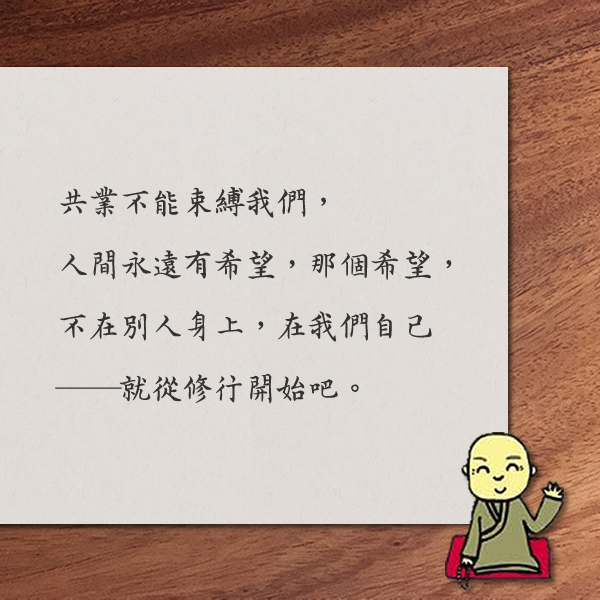| ■ 文╱果然是大師 典籍中,關於禪宗四祖道信的記載不多,卻發人深省。 道信禪師生長於政治動盪、世態紛亂的魏晉南北朝時期。自幼好佛的他,年方十四,初見三祖僧璨時,便說:「願和尚慈悲,授與我解脫法門!」不料,僧璨反問:「誰束縛你了?」道信回答:「沒人束縛我。」僧璨於是回他:「那你何必求解脫?」如此簡單幾句問答,十四歲的道信言下大悟,從此跟隨僧璨修行。 有一次,道信禪師領弟子至吉州,當時,正好有盜賊攻打吉州,而將吉州團團圍住,這一圍長達七十多日,城內泉井乾涸,糧盡援絕,軍民疲憊絕望。不料,道信領弟子進到城中時,乾涸的泉井竟然重新湧出井水,大眾頓生信心!吉州刺史叩首感恩,問道信禪師該怎麼辦,道信禪師便要軍民同聲念「摩訶般若波羅蜜」,於是,莊嚴的合聲從城中響起,城外的盜賊望向城內,竟見城牆之上盡是金剛力士,知道城裡必有異人,因而退去,吉州之危因而得解。 時隔一千年,明朝萬曆年間,又出現了一則與四祖有關的感應故事。當時的御史王珙因為求子,而協助重建道信禪師位於靳州的道場四祖寺,修建完成,果然順利得到一子。後來,由於政局混亂、民不聊生,因而盜賊四起,連靳州都岌岌可危。這時,有位老僧開始日日出現於王珙的家門外,到了第七日,王珙終於忍不住好奇,問這位老僧所求為何,這位老僧卻回答他:「我沒什麼所求,只求你一門剃髮出家。」王珙當下聞言只覺得無稽,然而,老僧卻正色道:「再晚就遲了。」說罷,老僧突然不見人影。王珙這才意會,恐怕是四祖道信示現! 於是,王珙命令家人儘速集合家中所有青黑色的布,製成僧帽百頂,全家老小九十餘口全數落髮,連夜躲進四祖寺中。這時,傳來盜賊攻陷靳州城的消息,城裡死傷無數,但王珙一家人卻因聽了老僧的話,全數倖免於難。 古來許多典籍之中,記載著多不勝數的關於修行的感應故事,諸如念佛、持戒、護生、戒殺、素食、行善……等等,在危難之中,這些人中總有人能躲過一劫,有著與大眾截然不同的命運。或許其中不是每個故事都能盡信,然而,從佛法因、緣、果的觀點來看,過去種下的可能導致惡果的業,確實會因為有了不同的心念與作為,令原本會發生的惡果無法成熟,而導致惡事不臨,這便是因果之間的變項——緣——的作用。 回顧這一年來的世界情勢,讓許多人對於未來感到不安。確實,這樣的情勢是人類的共業,如《華嚴經》所說:「譬如三千大千世界,非以一緣,非以一事,而得成就,以無量緣、無量事,方乃得成。」 然而,佛法也告訴我們,共業中有別業,如一場災難,有人受災較重、有人較輕,便是因為別業不同所致。譬如,如果我們能堅持慈心護生,那麼眾生在遭遇刀兵劫時,我們可能是那能倖免於難的;如果我們節約惜福,那麼在饑饉災荒發生時,我們可能是那能得到溫飽的。 同時,別小看了個人的力量。一個人的別業也會成為別人的助緣,引發他人別業的轉變,導致「一呼百應」的結果,也因此,聖嚴師父說:「人間是永遠有希望的。」因為,這個世間,有良知、善心、慈悲、正義的人,還是多數。 共業不能束縛我們,人間永遠有希望,那個希望,不在別人身上,在我們自己——就從修行開始吧。 |