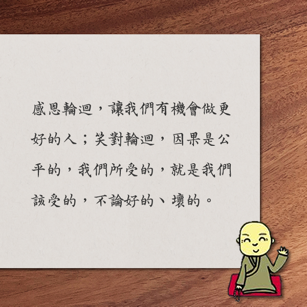 | ■ 文╱果然是大師 我們常常聽到佛陀智慧的開示,也經常分享關於佛陀宿世在六道中捨己救人的感人故事。今天,我們換換口味,看一則佛陀親口所說的,一則許久以前的「社會新聞」。 在一個大城中,有個知名的雜戲演員,名字叫「淨眼」,他的歌舞一流;同時,城中有名色藝兩全的女子,名字叫「鹿相」,她的美貌無雙,贏得城裡許多達官貴人的愛戴。 有一天,淨眼光顧鹿相的酒樓,這兩人立刻看對眼,於是,淨眼上前表達他的愛慕,並且約鹿相一塊出遊,鹿相也欣然同意,並且特地精心打扮了一番,戴上最耀眼的珍珠瓔珞,換上最華美的衣裳赴約。於是,淨眼駕著他心愛的馬車,載著鹿相來到一片美麗的樹園中,兩人花前月下,好不愉快。 再美的事物,看久也會變得平凡無奇——人也是一樣。鹿相的美貌,沒讓淨眼神魂顛倒太久,反倒是她那身價值連城的華服及寶飾,更讓淨眼心動。他愈看,心裡的貪念也愈來愈熾盛,終於趁鹿相不注意時下手殺害她,奪取她身上的華服及寶飾後,趁一位出家沙門「樂無為」出門托缽時,將屍首埋在他的茅廬地下。 鹿相失蹤的消息很快地驚動全城,國王甚至下令官府總動員,翻遍全城,卻仍找不到鹿相。這時,他們得到一個神祕的線報,大批人馬趕往樂無為的茅廬,果然挖出鹿相的屍首。眾人對這位出家沙門既犯不淨行、又殺人滅口的行逕不齒至極! 其實,這位樂無為早已證得了辟支佛果,了知三世因果的他,知道此劫乃是自己的業報所致,因此不為自己辯解開脫,任由眾人對他拷打辱罵,綁著他遊街示眾,接受全城人民的議論唾棄,並且將受到萬箭穿心的刑罰! 這一幕幕全都看在淨眼的眼裡。他原本得意自己的計劃天衣無縫,但是,看著樂無為無端受盡折磨,並且雖然臨刑在即,卻還是一副默然安忍的模樣,淨眼的心裡益發感到不忍,終於,即將行刑之際,他從人群中衝出,對大眾喊道:「別殺他!殺鹿相的人是我,要懲罰就懲罰我吧!」 情勢急轉直下,在淨眼的自白中,眾人明白了事情的真相。而樂無為在被無罪釋放後,知道經此一劫,自己的業障已消,且化度的因緣已了,於是以神通自取滅度,而淨眼最終也坦然接受了自己該受的刑罰…… 故事中,這位謀財害命,又嫁禍給別人的淨眼,不是別人,正是佛陀的前世,他除了那一世必須償命之外,更墮地獄受大苦報,就連成佛之後,遇到鹿相轉世的孫陀利,還被誹謗。 由此可知,我們所敬仰敬重,福慧俱足的佛陀,原本,也曾經是這麼一位與我們沒什麼兩樣的凡夫,甚至是更等而下之的登徒子、搶匪,以及殺人犯。 那麼,佛陀是一夕之間變得慈悲、智慧雙全嗎?從佛陀的本生故事看來,顯然並不是。他是經過一世又一世的輪迴,不斷地犯錯,又不斷地修正錯誤之後,才一點一滴地明辨了是非、長養了慈悲、累積了福德、開展了智慧,終於,在悉達多太子的最後身,悟道成佛。因此,經典云:「三祇修福慧,百劫修相好。」要得到佛果,要得到福德與智慧的圓滿,至少需要三大阿僧祇劫的時間。 三大阿僧祇劫到底是多久?「劫」的原意是無量數,意思是,別算了,算不清的,即便算清楚了,也沒太大的意義。 佛陀告訴我們,在生死之中,無止盡地輪迴流轉,一次又一次地經歷生老病死、愛別離、憎相會、求不得、五蘊熾盛,是很苦的——佛法正是教我們怎麼樣離這個苦。然而,從輪迴的積極面來看,正是由於我們不夠好;我們的身、口、意還有需要修正及改進的;我們在待人處世上還有需要學習的;我們跟他人的關係還有不夠圓滿的,因此,我們才需要這一次又一次的機會。 感恩輪迴,讓我們有機會做更好的人;笑對輪迴,因果是公平的,我們所受的,就是我們該受的,不論好的、壞的。除此之外,更要把握輪迴,隨緣消舊業,積極修福慧,如此,才能脫離無止盡的輪迴。 |