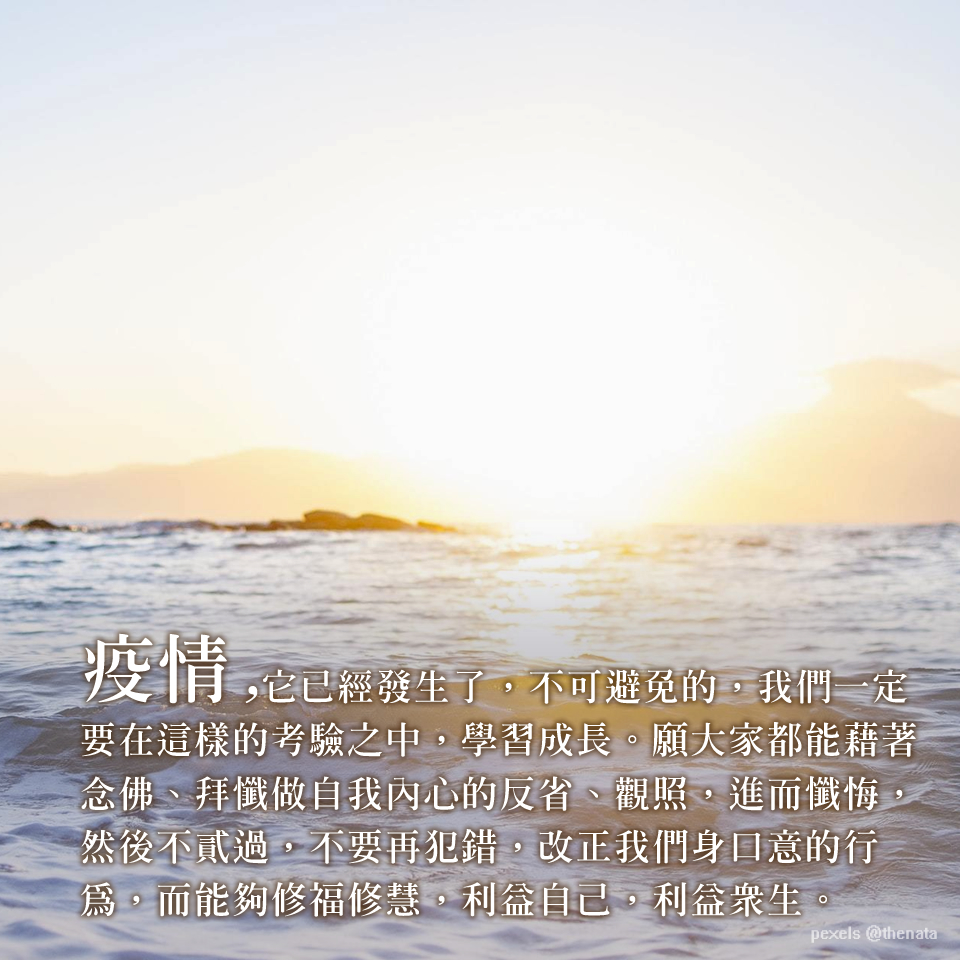 改正我們的身口意,修福修慧,利益自己也利益眾生 取得連結 Facebook X Pinterest 以電子郵件傳送 其他應用程式 9月 08, 2021 心靈電子報第926期 2021-9-8 心靈電子報/每週三發報 人間淨土 佛法的基本思想—知苦與離苦 真正懂得因果的人,是能知苦、受苦,並且不再製造各種苦因。 文 / 聖嚴法師 佛法的基本思想,說的無非是知苦與離苦。知苦是生活的事實,離苦則是生活的目標。 曾經有一次我在演講時,問聽眾說:「有誰結婚超過十年,而夫妻從來沒有吵過架的?」結果,有位立法委員舉手,他們夫婦兩人都是三寶弟子,互以同修伴侶相待,所以不曾吵架。 要做到夫妻不吵架,看似困難,其實也很容易。只要想想,當對方找你吵架的時候,你已經覺得很不是滋味了,假如你再還以顏色,一定是雪上加霜,苦上加苦,自己受了苦,還要叫人家也受苦,彼此苦苦相逼,何苦來哉? 但是這個道理雖容易聽懂,卻不容易做到,即使是身為佛教徒,在境界來臨的時候,往往也經不起考驗。例如有些人就會說:「他害我這麼苦!我也要叫他嘗嘗這個滋味,否則不就沒有因果報應了嗎?」 因果報應豈是這種講法?因果是貫穿三世的,你現前所受的苦,就是果報,受了苦就等於還報一樣,如果你不肯償還,反而想要變本加厲,以牙還牙,彼此鬥來鬥去,冤冤相報,那就沒完沒了,永無盡期了。真正懂得因果的人,是能知苦、受苦,並且不再製造各種苦因。所以說,夫妻兩個彼此為難,互相報復,不但不慈悲,也沒有智慧。 摘自:《平安的人間》 聖嚴法師法語 如果不能覺察自己的偏執, 就會被自己的好惡所蒙蔽, 也就會理直氣壯的 拿著自己所執著的價值標準, 去衡量外在環境。 合乎自己的標準,就起了貪愛心, 不合標準,就起了厭惡心, 這個分別心,就是煩惱的根源。 ◎ 摘自:《人行道》 本 週 選 讀 放下禪:上班族40則放下指引 聖嚴法師;法鼓文化編輯部選編 放下,是隨時得、隨時捨的歡喜心。思惟彈性來自因緣觀,以及分析力、組織力、同理心的高度協作,面對重重關卡,自然能舉重若輕...... 先放手,再放心:我從《心經》學到的人生智慧 吳若權 這是一個最迷亂的時代,卻也最有機會找回初心。透過一字一句貼近生活的誠懇解讀,讓我們再一次,讀懂《心經》...... 素超人報告 念佛、拜懺 為亡者祝禱,為世界祈福 文 / 素超人整理 法鼓山於八月二十二日總本山大殿舉行的「中元報恩三時繫念」線上共修超度法會中,方丈和尚果暉法師開示,從新冠疫情發生以來,全球陷入極大的艱困時刻,「今世界各處水災、火災、地震、旱災與戰亂不斷,這是人類的共業,但我們可透過共行來為人類祝福,發大菩提心,念佛就如同做好內心的水土保持,是解決環境共業的根本之道。」將法會功德迴向全球確診染疫者,希望他們都能得到好的治療,共同支持醫護人員所需,祝福所有人類都能幸福、健康、快樂、平安。 —————————————————————————————————— 方丈和尚並在農禪寺梁皇寶懺」線上共修法會第一天親臨現場時提示大眾,拜懺是為了自我反省、洗滌罪業,可以更深刻觀照內心、淨化心靈,透過懺悔法門及佛法薰習提昇人品、人格、道德,同時亦是護念善根、增長福德的方式,鼓勵大眾發無上菩提心、行菩薩道,在法會期間要懇切地「隨文入觀」。 農禪寺監院果毅法師則提醒大家,拜懺者本身能不能入觀,能不能進入你自己的內心世界做觀想、反省、觀照、自我的省察,是誦經拜懺的重點。 法師的唱誦帶領是一個助緣,隨著唱誦,帶領你自己進入觀照自心的內心世界,所以不是跟著法師拜了就有功德,而是自己拜了能夠入心、入觀,從意業、身業、口業開始調整,才是真正的有功德。 我們誦經、拜懺、閱經、讀經、看書,從真正的意涵來看,這些文字、唱誦,甚至法會的施設,都是在幫助我們修行的助緣(外緣)。懂得用功的人,就是善用這個助緣來修自己的心,修自己的身口業。 所以在任何的因緣之下,都是可以修行,甚至透過網路這樣的一個形式,更能夠讓我們回到修行、誦經、拜懺的本質本意上做檢視、檢查自己是不是真的有掌握到拜懺的真正核心意義。 —————————————————————————————————— 疫情,它已經發生了,不可避免的,我們一定要在這樣的考驗之中,學習成長。願大家都能藉著念佛、拜懺做自我內心的反省、觀照,進而懺悔,然後不貳過,不要再犯錯,改正我們身口意的行為,而能夠修福修慧,利益自己,利益眾生。也希望藉著法會共修,能夠讓所有聽聞這場法會的人,都能夠身心安定,也希望大家能在這場考驗中,身心更堅強、更茁壯、更成長。 希望能夠早日度過這場疫情,能夠讓大家都能往更美好的未來一起努力,祝福大家身心自在、平安。 延伸閱讀: 拜懺50問 法鼓文化編輯部 為什麼要拜懺?50個拜懺須知,讓你日新又新,懺罪增福,廣結善緣, 光明遍照!…… 活 動 頭 條 抵擋不了的熱情 快樂學佛人首辦線上課程 遠距離在家,也抵擋不了想學佛的熱情?法鼓山信眾教育院首度舉辦「快樂學佛人」線上課程,提供無法來道場參訪共修的民眾,一個居家學佛的新選擇...... 9/6恭逢菩薩聖誕 安和十年領讀《地藏經》 迎接地藏菩薩聖誕紀念日,法鼓山安和分院將於9/6~9/11舉辦《地藏經》線上共修,並於9/12直播地藏法會,鼓勵民眾匯聚慈悲祝福的力量,藉由網路串聯無遠弗屆...... 【一方