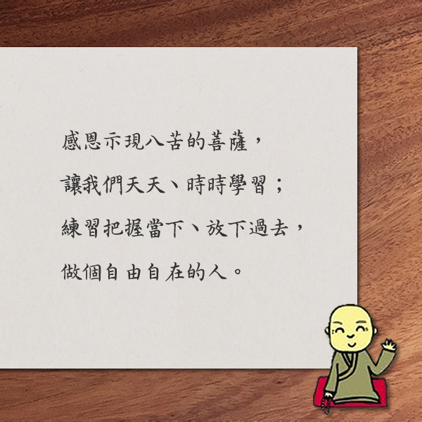 面對病苦以法為藥,把握當下、放下過去,當個自由自在的人 取得連結 Facebook X Pinterest 以電子郵件傳送 其他應用程式 11月 10, 2021 心靈電子報第935期 2021-11-10 心靈電子報/每週三發報 果然是大師 萬古是非渾短夢 感恩一生曾給予我們幫助的人事物,懺悔一生曾自傷傷人的人事物。 ■ 文╱果然是大師 「萬古是非渾短夢,一句彌陀作大舟。」 晚上鈔經時,臨《弘一法師嘉言錄》看到這句話很有感觸。人生如夢般短暫,唯有繫念一句彌陀聖號,寄予往生西方淨土的舟航。 昨日下午突接到訊息,一位信眾菩薩癌末,盼最後見我一面。很震驚!這一年多因疫情,許多人疏於聯繫、關懷,卻紛紛接到友人往生、生病的訊息。 儘管常常需要支援關懷院的告別式主法、關懷等,接觸到的都是老、病、死;但接連收到親近友人的訊息,雖然不免錯愕,卻也知有其因緣。 面對生病,尤其罹癌,對任何人都是考驗,對於性格堅強、剛強、執著者,考驗更大,不是無法接受自己生病的事實,就是相信能靠著自己意志力,打敗病魔。 但往往所得的是反作用力,加劇身體的不舒服。那是一種對抗的內心,而不是接受和面對,可說是身痛加心苦。 只能引導友人,了知人生如夢一場,該努力的都已盡到責任,放不下的事、人,也要在此刻放手,讓心自由、自在;感恩一生曾給予我們幫助的人事物,懺悔一生曾自傷傷人的人事物。接著就是學習聖嚴師父所說:「把身體交給醫生,把性命交給佛菩薩。」 人生八苦「生、老、病、死、求不得、愛別離、怨憎會、五蘊熾盛」每天上演,但我們往往忽略它,覺得跟我們無關,離我們很遠。 感恩示現八苦的菩薩,讓我們天天、時時學習;練習把握當下、放下過去,做個自由自在的人。 聖嚴法師法語 當煩惱現前之際,不是和煩惱對抗,而是用慚愧、懺悔、感恩的心來融化它。 ◎ 摘自:《法鼓晨音》 本 週 選 讀 法的療癒:佛陀教我的10堂生死課 杜正民 將疼痛當成話頭來參,釐清自己的生命觀,自製經文病歷表,明白佛教的死亡觀,讓自己與親友心無罣礙...... 照護年邁父母的勇氣:阿德勒心理學x肯定自己x修復親子關係,照護者的心靈自癒指南 岸見一郎 當照護者被沮喪、無力的負面情緒淹沒時,該如何自救?岸見一郎以自身經驗向讀者分享照護心得...... 素食聰明吃 禪味小食堂──西式酸黃瓜 西式酸黃瓜是西方人飲食中不可或缺的配角,幾乎三明治、漢堡、沙拉都要來上幾片。只要學會這道西式小菜,不僅在家隨時皆可嘗到異國口味,還能省下上餐館的錢喔! 做法 : (1) 小黃瓜洗淨、切段,放入滾水汆燙10秒,撈出,放涼。 (2) 將所有調味料放入小鍋中,煮至糖融化即熄火,放涼。 (3) 玻璃罐中,先排入小黃瓜,加入醬汁,蓋上瓶蓋,移入冰箱1週,醃好的小黃瓜可存放1∼2個月。 (4) 食用時,將小黃瓜切片。 TIPS : • 小黃瓜長度可依玻璃罐大小,來切段。 • 玻璃罐須事先洗淨,烘乾備用。 摘自:《人生雜誌405期》 延伸閱讀: 禪味點心 陳滿花 禪味點心,化繁為簡,隨緣變化,最新鮮的天然食材、最簡單的準備、最簡單的烹調,讓你以純淨的禪心做點心!...... 活 動 頭 條 大悲心福造十方 法鼓山11/20起辦祈福法會 法鼓山將於11/20(六)~11/27(六),在法鼓山世界佛教教育園區舉辦「大悲心祈福法會」,由僧團法師帶領民眾線上共修,串聯祝福心念安定人心,凝聚悲心善願福造十方...... 助偏鄉線上學習 法鼓山慈基會和學童歡喜開箱 法鼓山慈善基金會繼捐助彰化、嘉義社區學童課後所需平板,於11/4上午再度前往南投縣東光國小,捐助多部平板電腦給需要的學童,慈基會會長柯瑤碧一行和東光國小師生歡喜開箱,期望學童善用數位科技,豐富生命的智慧...... 大菩提心——主題年新春特惠 2022新年:祝願彼此∼新年快樂,福慧滿人間! 查看活動 法鼓文化 版權所有 © 2021 Dharma Drum Corp. All Rights Reserved 電子報管理:點此訂閱 / 取消電子報 取得連結 Facebook X Pinterest 以電子郵件傳送 其他應用程式 留言