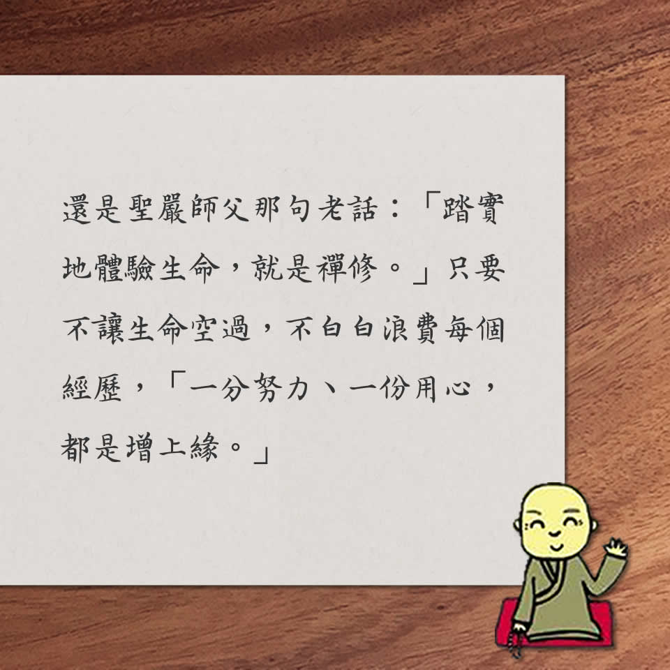 步步踏著、用心體會,幸福其實就在我們的身邊 取得連結 Facebook X Pinterest 以電子郵件傳送 其他應用程式 3月 23, 2022 心靈電子報第953期 2022-3-23 心靈電子報/每週三發報 果然是大師 春在枝頭已十分 我們心心念念追求的,其實就在我們的身邊。 ■ 文╱果然是大師 唐朝的龍潭崇信禪師,未出家前,就住在天皇寺外的巷衖,以賣燒餅維生。稟性慷慨善良的他,每天都供養寺裡的道悟禪師十個燒餅。道悟禪師倒也有趣,每次只收下九個,另一個還給他,並祝願道:「這個燒餅回贈給您,福祐您的子孫。」就這樣,兩人結下好因緣。有一天,這位賣燒餅的少年也決定出家了,就拜天皇道悟禪師為師,道悟禪師為他命名「崇信」。 崇信出家後,日復一日勤勞侍師之外,就是忙著挑水砍柴,燒飯煮菜等勞務,終於,有一天,他忍不住開口問道:「師父,弟子自從出家以來,您還沒教導過弟子佛法心要,您什麼時候才要教我?」道悟禪師回道:「從你出家以來,我無時無刻不在教你啊!」崇信不解:「您哪裡教過我了?」道悟禪師回他:「你倒茶給我,我就喝;你為我準備飯菜,我就吃;你向我問訊,我就點頭回禮……這全部都是佛法心要啊。」 崇信一聽,滿頭滿惱的問號,低頭想了半天。道悟禪師見狀,適時點撥:「『道』是直下便見的,別動腦,一想就錯了。」崇信一聽,恍然大悟! 崇信禪師不是第一個,也不是最後一個懷疑師父沒有佛法、不會教的。同時期的鳥窠禪師(道林禪師),也遇到侍者弟子前來辭行,說要去其他地方找老師學佛法,鳥窠禪師聽了,懶洋洋地說:「哦,佛法啊,我剛好有一點啊。」侍者不以為然地反問:「有嗎?那您說什麼是佛法?」鳥窠禪師慢條斯理地從衣服上拈起一根綿絮,呼口氣吹掉,說道:「就是這個啊。」他的弟子也是善根深厚,一點即悟。 修行人想開悟見道,就如同世人想追求幸福。然而,就像童話《青鳥》中尋找幸福的孩子、也像「終日尋春不見春」的無盡藏比丘尼,我們總以為幸福和佛法在遠方、在經藏裡,非得經過特別的做為或追求才能得到,卻常常對周圍的一切視而不見,因而沒發現,我們心心念念追求的,其實就在我們的身邊。 只是,這樣的『悟』,說來容易,也得來不易,總是還得經歷過幾番追求、幾番風雨、幾番得失、幾番恩怨——這都是累積資糧的過程,所以,還是聖嚴師父那句老話:「踏實地體驗生命,就是禪修。」只要不讓生命空過,不白白浪費每個經歷,「一分努力、一份用心,都是增上緣。」儘管努力於當下,儘管步步踏著,儘管用心體會,總有一天,我們會看見幸福的青鳥;我們會發現,春在枝頭已十分。 聖嚴法師法語 心靈的充實比物質的擁有,是更可貴的財富。 ◎ 摘自:《如何渡過苦日子》 本 週 選 讀 《大乘起信論直解》校注 憨山大師 著;蔡金昌 校注 隋、唐之後的佛教,以如來藏思想為大宗,影響最鉅的論典是傳為馬鳴菩薩所造的《大乘起信論》。本論乃漢傳佛教重要思想根據,被視為學習中國佛教的入門書籍...... 每一天練習照顧自己2 梅樂蒂•碧緹 帶領讀者,用全新的思維思考,用全新的思維看待生命、他人與自己,並且幫助讀者向內聚焦,將注意力轉回自己身上,審視內心的一切,徹底清理自己的內在,開始自我覺察...... 智慧掌中書 我們在生活中如果碰了釘子,所謂「眼中釘」,要不要恨上對方一輩子? 碰釘子是很正常的,下次注意就好。已經碰到釘子,還要再生氣地搥它一下,結果,將是你自己倒楣,而不是釘子倒楣。 多半的人碰釘受傷,總是希望把釘子砍掉、拔掉,用槌子搥扁、搥斷它。 這是因為它讓你感覺不舒服。但是佛法的教導是要我們在碰到釘子後,自己能夠療傷,而不是想辦法要把釘子敲掉、拔掉或是去征服它,那反而會造成雙倍的,甚至好幾倍的痛苦,最後你遍體鱗傷,釘子還是安然無恙。 人不必要與釘子計較,但是可以改善釘子。釘子是用來釘東西的,不是拿來傷人的,所以,如何讓釘子發揮應有的用途是很重要的。 摘自:《別再執著了》 延伸閱讀: 別再執著了 聖嚴法師 世上沒有一成不變的事,現在覺得對的想法,一轉眼可能就改變了。在落入執著的陷阱時,要學會幫自己解套,別再執著了!...... 活 動 頭 條 考僧大4月上網報名 過來人說:心態最重要 為現場及海外連線的40多位考生和親友,簡介僧團育才的目的與方式;法鼓山僧伽大學於3月13日上午9點,在階梯教室舉辦「2022年招生說明會」,由副院長果光法師、常寬法師和校務主管們,就考生各項提問詳細釋疑,並請學僧代表分享應考經驗、導覽校園環境...... 喜入人間淨土 法鼓山花蓮精舍揭幔迎新 光照洄瀾勝地,綻放弘法的新頁。法鼓山花蓮精舍於20日上午9點半正式落成揭幔、開光啟用,並在午後2點舉行首場祈福皈依大典,111位民眾在佛前誓願皈依三寶,領證成為學佛新鮮人,邁向自利利他的成佛之路...... 【手珠念珠展】 參展手珠念珠95折,任選三件88折...... 查看活動 法鼓文化 版權所有 © 2022 Dharma Drum Corp. All Rights Reserved 電子報管理:點此訂閱 / 取消電子報 取得連結 Facebook X Pinterest 以電子郵件傳送 其他應用程式 留言