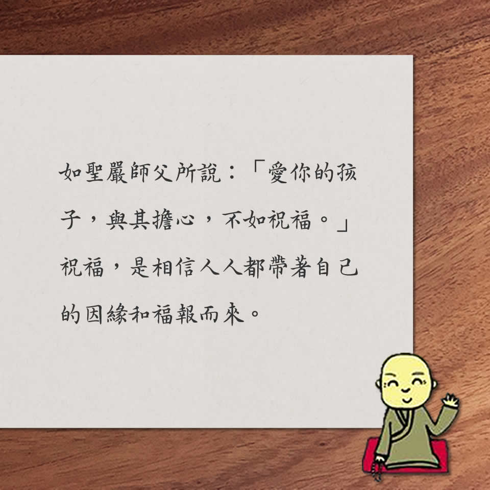 | ■ 文╱果然是大師 有個小兒,七歲之時便好樂佛法,一日,見了來托缽的阿羅漢,便隨他辭家修道去,任憑母親怎麼難過不捨,他仍堅定心意,不為動搖。在精勤修行一年後,便證得了阿羅漢。 一日,他突然一嘆而笑,他的師父見狀,問他為什麼笑,他說自己因為有了宿命通,而看清了自己前幾世: 「我在前五世時,我的母親與鄰家婦人同時生了兒子,只是,我未滿一歲便夭折了,從此以後,我的母親悲傷不已,每每見了鄰人的兒子,便想著:『要是我的兒子還在的話,也應該這麼大了,也應該在學走路了……』想著想著,就淚如雨下,不能自己。 後來,我又投胎做了做了人家的兒子,這一世我同樣早逝。我死了之後,我的母親每每見到別人家襁褓中的孩子餓了,就想著:『我的兒子在哪裡?他是不是也餓了?』想著,同樣悲傷不已。 接著,我又投胎了。這一世我活得較久,不過,也才活了幾歲。我母親每每吃飯的時候,便難過起來,想著:『兒子不在了,餐桌少了個人,以後他再也不能陪我吃飯了……』就這麼因為想念我,而日日食不下嚥。 後來,我又投胎做了第四個母親的兒子。這一世,我活了十歲,我母親本來還打算幾年後幫我做門親事,壓根沒想到我會薄命先死。跟我同輩的堂兄弟、表兄弟娶妻時,我母親見了,便傷心慨嘆:『如果我的兒子還在,現在也該討了媳婦了……唉,老天爺怎麼這麼不長眼睛……』 接下來,就是這一世了。我見到在我隨著師父上山修行之後,我母親也同樣走不出悲傷,日日牽腸掛肚,想著我過得好不好,有沒有吃飽穿暖…… 巧的是,城裡有個大型的慶典,我這五個母親竟然兜在一塊了,她們說起各自失去的兒子,說起自己的悲傷,難過得相對痛哭……她們各有自己失去的兒子,但每一個都是我啊……我笑,是因為我輾轉做了她們的兒子,因為我的離開,才讓她們這麼悲傷,但是這一世又一世的死死生生,並非我能決定,而是因緣業力使然,是直到現在,我才證得解脫,在這之前,我也無可奈何啊。雖然我不再受生死之苦,但看著我的母親卻都仍在生死之中流轉,仍為愛別離、求不得而苦,她們為失去我而悲傷,我卻為她們不得解脫而悲嘆啊……」 這是《佛說五母子經》的內容。天下的母親擁有一樣的心境,然而,這部經的主旨不是喪子之痛,而是在無常的生死中,我們能不能時時警念無常,而在每個當下盡責盡分?能不能因了知無常,一切都是因因緣而生、因因緣而滅,而不執著曾經有,或此時有,更不去無謂地擔心未來。因為未來,是由我們每個當下此刻身口意所造作的一切而決定——我們都在寫自己的未來。 因此,如聖嚴師父所說:「愛你的孩子,與其擔心,不如祝福。」祝福,是相信人人都帶著自己的因緣和福報而來;祝福,是用善的身語意相互對待;祝福,是對方需要時,我們在,卻不強加自己的意志在對方身上。 如此,這樣的一場親緣,才是善緣相聚。 |