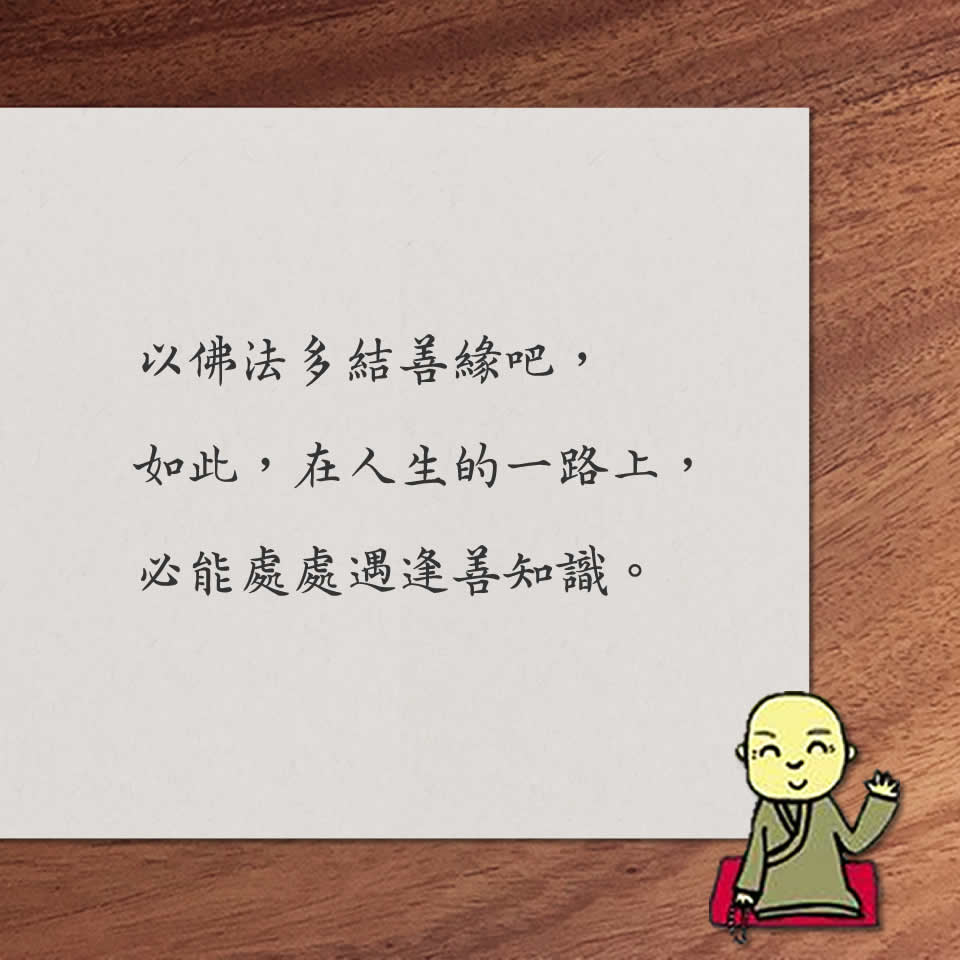 | ■ 文╱果然是大師 佛弟子都知道,佛陀一生最大的逆增上緣,也是在佛陀晚年時處處與他作對,造成僧團不和的,就是他的堂弟提婆達多。 有一天,佛陀與侍者阿難入城乞食,提婆達多正好同樣在城裡乞食,佛陀原本打算進到某個巷子,遠遠看到提婆達多先他一步走進巷子,便決定退開,走別的路。 當時,一旁的阿難不解,問佛陀為什麼要避開,他說:「世尊!難道您會怕提婆達多嗎?」佛陀回他:「我不是怕他,而是智者自應知道要遠離惡人。」阿難又問:「既然如此,世尊何不命令他離開就好?」佛陀說:「我不會那麼做。他自己造的業,他自己終將承擔。每個人都活在自己的因緣果報裡——我是,他也是;我承擔我的,他承擔他的。他的業果與我的並不相干,他的世界與我的自然並不相同。」阿難還是不解:「可是他確實在世尊您的僧團裡造了惡,那又該如何看待?」 於是,佛陀鄭重告訴阿難:「所以說我們必須跟愚癡迷惑、不明因緣因果的人保持距離,能避則避,少與他們共事,少跟他們說話,更不能跟他們談論是非。」阿難反問:「愚癡迷惑的人是他們,為什麼接近他們、跟他們說話會有問題?難道接近他們也有過失?」 佛陀這麼回答:「他們的愚癡,以及不明因果,使得他們犯下種種身、口的惡行,邪見日漸增長,而離正法愈來愈遠。所以,親近這樣的惡知識,我們的知見會受其影響,降低對正法正律的判斷力,而不自覺地變成一個對正法不聞、不信、不守的愚癡無智之人。相反的,如果接近善知識,則會幫助我們向上向善,增長種種功德,在修行上更易成就。所以,阿難,應該遠離惡知識,親近善知識啊。」 佛陀曾教導斷離生死煩惱,預入聖者之流的四個必要修行綱目——即所謂「四預流支」——為親近善士、聽聞正法、如理作意、法隨法行。意即親近善知識後,對佛法進行聞、思、修。其中,親近善知識是最關鍵的第一步。若是一開始就遇錯了人,得到錯誤的知見,走錯了方向,那麼接下來不管再怎麼努力,都是枉然。 在我們成長的過程中,師長及朋友(或者如現在的流行用語,閨蜜或哥兒們)對我們生命的樣貌影響極大,他們可以是我們的導航、地圖,是鏡子、是垃圾桶,甚至是典範、加油站。 如舍利弗與目犍連這對好朋友,他們在尚未認識佛陀之前就已經是修行人,只是尋找不到解脫的正法,兩人於是約定好誰先聞道、見道,一定要教導對方。後來,舍利弗從鶖子尊者那兒聽到了「因緣偈」而開悟證果,第一個傳授的,果然就是目犍連。至於古往今來的政治人物,因為誤信惡臣、惡友而身陷風暴的,也不勝枚舉,如著名的阿闍世王,就是誤以提婆達多為良師,才會犯下篡位弒父的逆罪。善知識與惡知識對我們影響之鉅,由此可見。 那麼,如何才能遇見善知識?聖嚴師父在〈明師難遇〉一文中真實地告訴我們:「佛法講求一個『緣』字。」「明師未必是大名鼎鼎的人,能夠有助於你的人,絕不在於他的名望的大小,只要他和你有宿緣,便能夠使你受益無窮……有緣則得來毫不費力,無緣則雖面對明師亦不相識。」 所以,歸根究柢,還是以佛法多結善緣吧,如此,在人生的一路上,必能處處遇逢善知識。 |