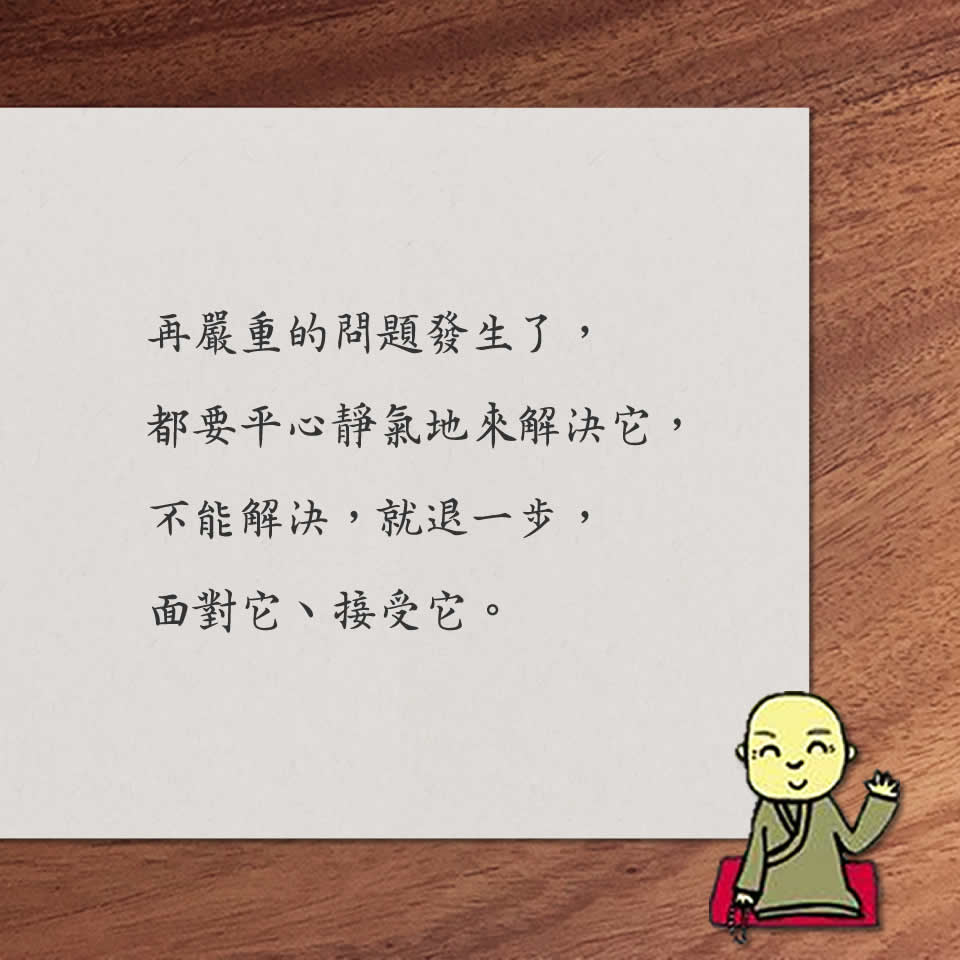 為了爭勝而動了不好的身口意業,反而徒增未來將背負的因果 取得連結 Facebook X Pinterest 以電子郵件傳送 其他應用程式 6月 29, 2022 心靈電子報第967期 2022-6-29 心靈電子報/每週三發報 果然是大師 幽默無諍 勝了再多人不算贏,勝得了自己的貪瞋癡慢疑,才是真勝。 ■ 文╱果然是大師 佛陀在舍衛國祇樹給孤獨園時,目犍連的一位弟子和阿難的一位弟子生起爭勝的心,互相比較兩人之中誰的梵唄聲較好,當時,僧團裡其他的比丘都知道了這兩人之間的爭執,於是向佛陀報告。 佛陀聽了,要弟子把這兩人找來,當面問道:「我曾經教導過你們爭論、爭勝的法嗎?」兩人想了想,回道:「沒有,師尊從來不曾這樣教導我們。」佛陀接著說了:「我從來不要你們跟誰爭長短、比輸贏,我說的法是為調伏眾生的執著,令眾生離苦得樂而說。你們遇到一切事、做一切事,也應當思惟是不是跟我教的法相符合。」佛陀並說了一個偈子: 千千為敵,一夫勝之,未若自勝,已忍者上。 意思是一個人,即便有戰勝一千個人的能力,還不如能夠戰勝自己——戰勝自己的貪瞋癡慢疑。兩位比丘聽了,慚愧地向佛陀懺悔。 聖嚴師父也曾經對護法弟子們說過蘇格拉底的故事。蘇格拉底的懼內是有名的,不但天天對他河東師吼,還會動手動腳。有一天,他太太跟他大吵一頓,他決定出門避風頭先,沒想到才走出門口,樓上一盆水便當頭澆了下來,澆得他渾身濕淋淋,沒想到,他沒發脾氣,反而講了一句千古流傳的話:「雷霆之後必有暴雨」。 師父藉著這個故事告訴弟子們,再嚴重的問題發生了,都要平心靜氣地來解決它,不能解決,就退一步,面對它、接受它。就像退居方丈果東法師也常說的:「身段柔和彎,處事相見歡。」口頭上的爭勝是一時的快意,為了爭勝而動了不好的身口意業,反而徒增未來將背負的因果,怎麼會值得? 就像佛陀說的,戰勝了再多人不算贏,勝得了自己的貪瞋癡慢疑,才是真勝。 聖嚴法師法語 智慧本身必須放下主觀的自我,同時要靠經驗的累積,心胸廣大,看的遠又看的準。 ◎ 摘自:《叮嚀》 本 週 選 讀 幸福告別︰聖嚴法師談生死關懷(大字版) 聖嚴法師 我們的生命不只屬於自己,更與整個世界息息相關。溫暖別人,即是溫暖自己;關懷別人,即是關懷自己。種種生死聚散,都是豐富人生的成長...... 緣起性空通往一切美好:放下執著、人生沒煩惱的佛法36問 冀劍制 緣起性空觀能帶來各種好處,其中最重要的是心靈的自由。沒有任何思想、觀念的框架可以束縛我們,只要有足夠智慧就一定能從煩惱掙脫...... 素食聰明吃 禪味小食堂──涼拌脆蘿蔔 國民蔬菜白蘿蔔,無論醃滷煮炒都可口美味,是餐桌上不可或缺的食材。以涼拌手法料理白蘿蔔,可保留脆度,淋上薑油,除了平衡白蘿蔔的涼性,更增添風味。 【材料】白蘿蔔1條(500g)、紅蘿蔔絲10g、香菜根末1大匙、薑末1大匙、油1╱2大匙、麻油1╱2大匙 【調味料】鹽1小匙、糖1小匙 做法 : (1)白蘿蔔洗淨削皮,刨成粗絲,加入紅蘿蔔絲與調味料充分拌勻出水,倒掉水分,並擠乾蘿蔔絲,備用。 (2)熱鍋倒入1╱2大匙的油,炒香薑末,起鍋前加入1╱2大匙麻油,即成薑油。 (3)取一容器,放入蘿蔔絲,再加入薑油拌勻,最後拌入香菜根末即可。 摘自:《人生雜誌407期》 延伸閱讀: 純素主義烘焙聖經:89道巴黎名店配方與步驟技巧教學,無蛋奶全植物也能做出正統法式甜點 貝雷尼絲.勒孔特 80多道純素法式甜點,兼顧視覺、美味、創新與健康,不論你是專業廚師或是家庭烘焙愛好者都能跟著上手...... 活 動 頭 條 感恩護法重建17週年 臺東信行寺7/17將為民眾辦皈依 成立半世紀的臺東信行寺,17年前由法鼓山創辦人 聖嚴法師帶領護法信眾圓滿重建,親自主法開光。寺方藉重建週年紀念定於7月17日上午9點舉辦祈福皈依大典,鼓勵學佛民眾註冊領證...... 滌淨熱惱身心清涼 週末雲端共修大悲懺 法鼓山世界青年會與加拿大溫哥華道場,將於本週末各自舉辦線上「大悲懺法會」,帶領民眾藉由真誠禮拜、懺悔,祈求甘露潤澤,滌除身心熱惱,學習觀音菩薩的悲心願力,練習做眾生的觀音,並將修行功德迴向給因疫情、戰爭或事故而受苦受難的同胞...... 《人生》雜誌467期7月號出刊! 體驗持咒自安安人,化解障礙,讓修行更得力的法益...... 查看活動 法鼓文化 版權所有 © 2022 Dharma Drum Corp. All Rights Reserved 電子報管理:點此訂閱 / 取消電子報 取得連結 Facebook X Pinterest 以電子郵件傳送 其他應用程式 留言