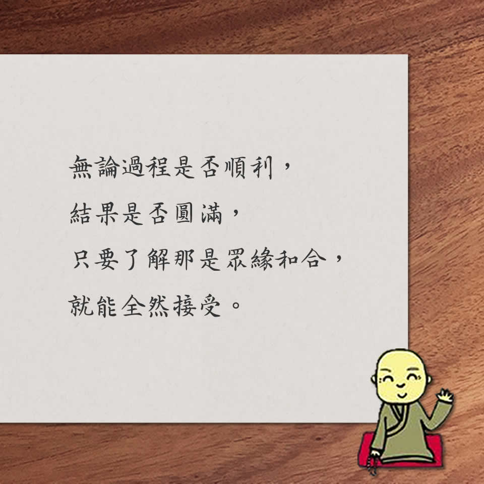 成就一件事須盡力而為,但不過度勉強以致敗壞身心 取得連結 Facebook X Pinterest 以電子郵件傳送 其他應用程式 3月 15, 2023 心靈電子報第1003期 2023-3-15 心靈電子報/每週三發報 果然是大師 修行要帶幾分勉強 ■ 文╱果然是大師 前一陣子,活動支援的邀約如雨後春筍般接踵而來,雖擔心身體會吃不消,但在人力吃緊的情形之下,也都答應了。向來不輕易祈求護法龍天的我,當時只能放下顧慮,以護持大眾共修為由,把自己交給護法龍天了。 經過一連串的執事、出坡、活動支援等,緊湊的行程終告一段落。過程中縱然有疲憊和些許不適,總算一一平安撐過,以此感恩護法龍天的慈悲護佑。 早年在《聖嚴法師教默照禪》書中看過師父的一句話:「我知道自己的體能,也知道自己的心力,總是在帶幾分勉強,而又絕不十分勉強的情況下,全力以赴、盡心而為。」這句話讓我明白,要成就一件事情,必須盡力而為,也往往需帶幾分勉強,同時又要把眼光放遠,不能過度勉強以致敗壞身心。 《雜阿含經》中記載,佛陀有一位出家弟子名二十億耳,因為長期精勤修習仍不能得力,而萌生還俗的念頭。佛陀得知後,便用彈琴的譬喻來勉勵他:「琴弦調得太緊會彈不出好的聲音,調得太鬆也是如此。修行好比彈琴,過度精進就像調得太緊的琴弦,會導致身心緊繃、急躁不安;太鬆懈又像調得太鬆的琴弦,只會隨順習氣,難以成就。唯有鬆緊適中,不過度勉強自己,也不放縱自己,才是利於修行。」 以上述個人生活例子來說,但願趁此皮囊還堪用,以照顧好自己的心為前提之下,身體即便帶著幾分勉強,也要把握培福修慧的因緣。盡心盡力為大眾服務時,無論過程是否順利,結果是否圓滿,只要了解那是眾緣和合,就能全然接受。 聖嚴法師法語 人與人相處,就像馬刺一樣, 要讓馬驚醒, 又不要讓馬皮破血流, 其間的拿捏掌握,就是做人的分寸。 ◎ 摘自:《是非要溫柔》 本 週 選 讀 日日好日 釋繼程 如果你的心總是無法安頓,可選擇以正面、感恩的態度面對人生的各種境遇,好好享受過程與結果...... 淡定的智慧:找回心平氣和、快樂自在的人生100幸福課 李叔同 淡定是心靈的修煉,是人生的境界和智慧。心念轉則行為轉,只有跟隨內心的感覺,才能找到真正的自己...... 素食聰明吃 日式味噌蘿蔔 白蘿蔔一年四季都吃得到,如何享用它的美好?以檸檬汁佐信州味噌,做成日式風味泡菜,封藏天然的甘甜。 白蘿蔔在日本稱為「大根」,曾有日本朋友做了「味噌大根漬」,與蓮華主廚分享,喀滋喀滋的爽脆口感中,有天然的檸檬香氣,讓她十分驚豔,從此,這道小菜成為家中冰箱的常備小菜,再熬上一鍋稀飯最速配。 【材料】 白蘿蔔1800g、檸檬汁320CC、日式味噌500g 【調味料】 冰糖400g 做法: (1)白蘿蔔連皮用刷子洗淨,切成1公分厚片,每片再切成4等分。 (2)取一鍋,將白蘿蔔片、冰糖、味噌、檸檬汁全部加入,略拌後用保鮮膜封口放入冰箱,5小時後打開保鮮膜,用乾淨筷子拌勻,再封口放入冰箱。 (3)隔天起,每天取出,用乾淨筷子拌勻,醃漬至第四天即可食用。 Tips: (1)味噌可選用日本信州味噌,鹽分較低,口味較清淡,是僅醱酵數個月的白味噌,有時會有原料粒子殘留,顏色較淺,偏米黃色。 (2)用檸檬汁的天然酸味搭配味噌,可增添泡菜的果香味。 (3)取用蘿蔔泡菜時要用乾淨的筷子,醃漬時間愈久愈入味。泡菜完成後,最好趁新鮮食用完畢。 摘自:《人生雜誌418期》 延伸閱讀: 幸福廚房 王惠淑, 林麗華, 王秀勤/著, 頤嵐達/文字創作, 李東陽/攝影 這是一本有生命厚度的美食故事書,也是嚴謹精緻的素食料理工具書,邀請您一起用「心」跳脫傳統食譜的格局...... 活 動 頭 條 邀您穿越歷史長河 3/18認識蕅益大師生命風采 法鼓山創辦人 聖嚴法師的博士論文,即以研究明末四大師之一的蕅益大師為核心,也多次在《法鼓全集》中提到受大師影響甚深。3/18首場講座將邀請中研院中國文哲研究所研究員廖肇亨主講,分享蕅益大師如何終其一生追求教義與觀行並重、理論與實修雙運...... 落實生活「心」主張 悟寶兒童營提昇環保意識 面對當代社會過度生產、大量消費,所造成的環境破壞與汙染問題,3/12下午2點,23位淡水地區學童,透過法鼓山悟寶兒童營所帶領的戲劇演出、影片欣賞、互動提問,學習節制物質欲望,從自己做起...... 《家事液態皂-清檸尤加利》新品上市! 來自100%真正植物油的多用途家事清潔劑...... 法鼓文化 版權所有 © 2023 Dharma Drum Corp. All Rights Reserved 電子報管理:點此訂閱 / 取消電子報 取得連結 Facebook X Pinterest 以電子郵件傳送 其他應用程式 留言
