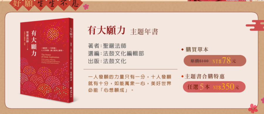 【全館消費即贈送春聯】2025主題年「有大願力」新年特惠 取得連結 Facebook X Pinterest 以電子郵件傳送 其他應用程式 12月 23, 2024 法鼓文化 版權所有 c 2025 Dharma Drum Corp. All Rights Reserved.客服問題請洽:market@ddmf.org.tw ╱客服專線電話:02-2896-1600 取得連結 Facebook X Pinterest 以電子郵件傳送 其他應用程式 留言